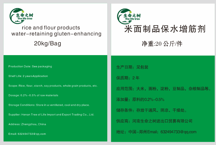 Agent d'humidification et de renforcement pour produits à base de riz et de farine